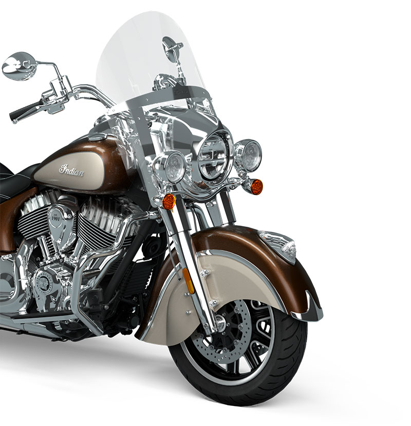 | 標準装備 | クイックリリース・ウインドシールド、リモートロック式ハードサドルバッグ、ハイウェイバー、ライドモード、ABS、クルーズコントロール、キーレスイグニッション、インディアン®スクリプトタンクバッジ、12V充電ポート |